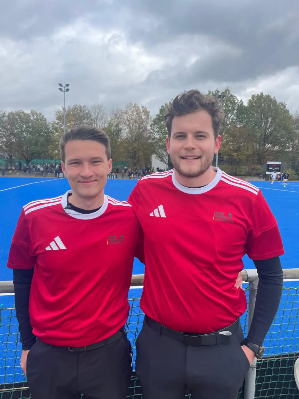 Nach einem guten Frühstück am Samstag ging auf die Anlage des westlichsten Hockeyvereins Deutschlands. Dort angekommen erwarteten uns 8 Grad, Sturmböen und Regen. Bei dem Wetter dürften sich die drei Hamburger Mannschaften deutlich heimischer gefühlt haben als die Spieler des Uhlenhorst Mülheim, deren Klub geographisch am nächsten liegt. Im ersten Spiel der Endrunde, HTC Uhlenhorst Mülheim gegen den Klipper THC waren Jonas Pacyna und Ben Buchbach an der Pfeife aktiv. Daher nutzte ich die Zeit um mich mit Simon Taubert, meinem Kollegen fürs nächste Spiel, auf eben jenes vorzubereiten. Neben dem üblichen Absprachen, nutzten wir auch Szenen die sich im ersten Spiel ergaben, um an Hand dieser zu besprechen wir in vergleichbaren Situationen handeln wollten. Diese frühzeitig Absprache sollte sich noch auszahlen, da sich im ersten Spiel Uhlenhorst erst im Shoot Out durchsetzen konnte und mein Kollege als dritter Schiedsrichter aktive werden musste, blieben uns zwischen den beiden Spielen lediglich zehn Minuten.