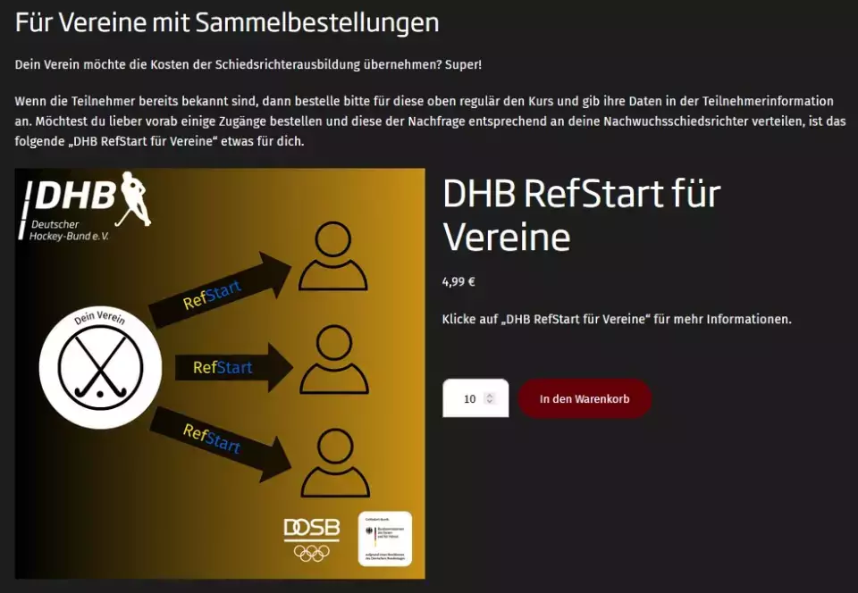 E1 Zertifikat online über REFSTART in der Hockey-WABE (Selbstlerntool)