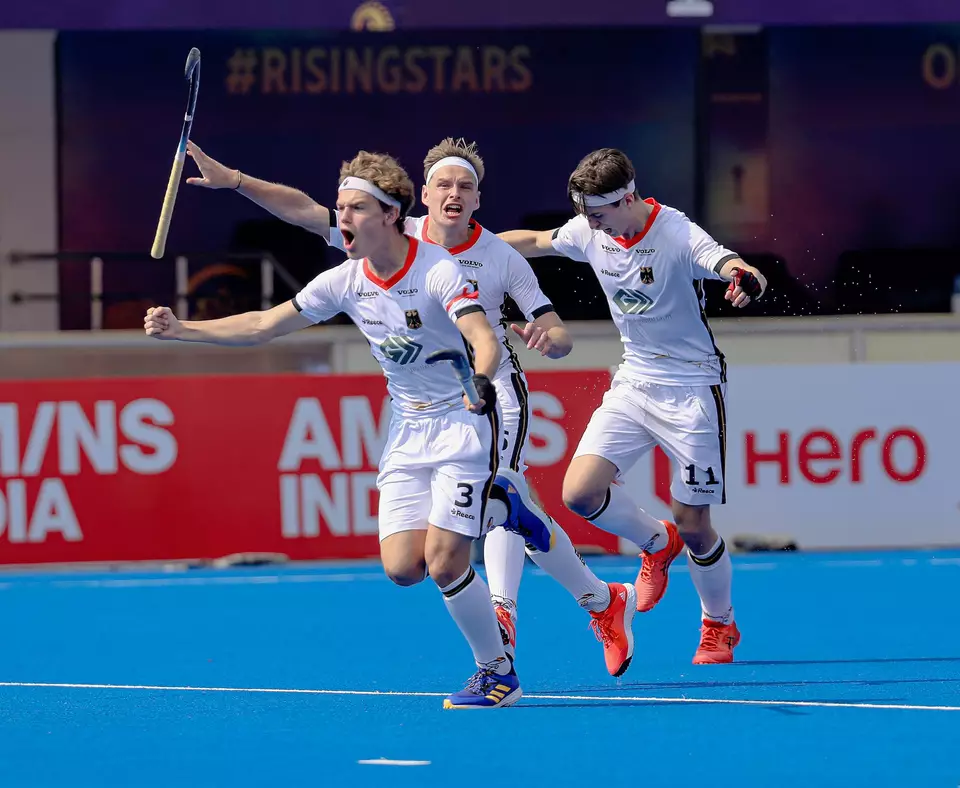 Das deutsche Juniorenteam hat bei der Weltmeisterschaft in Indien das Halbfinale erreicht. Nachdem Kapitän Benedikt Schwarzhaupt schon in der ersten Minute mit einer heftigen Prellung ausfiel, erkämpfte sich das DHB-Team nach 1:1-Pausenstand eine Spielüberlegenheit, geriet jedoch in der Schlussphase in Rückstand. Doch den glich Masi Pfandt 19 Sekunden vor Ende aus. Und nachdem Anton Brickman im Spiel brillant gehalten hatte, bewies Jean Danneberg im Penalty-Shootout, dass die Mannschaft zwei Weltklasse-Torhüter hat. Er ließ nur einen spanischen Treffer zu, so dass die Deutschen mit 3:1 die Oberhand behielten. Im Halbfinale am Freitag trifft die Mannschaft um 15.00 Uhr deutscher Zeit auf Gastgeber Indien.
